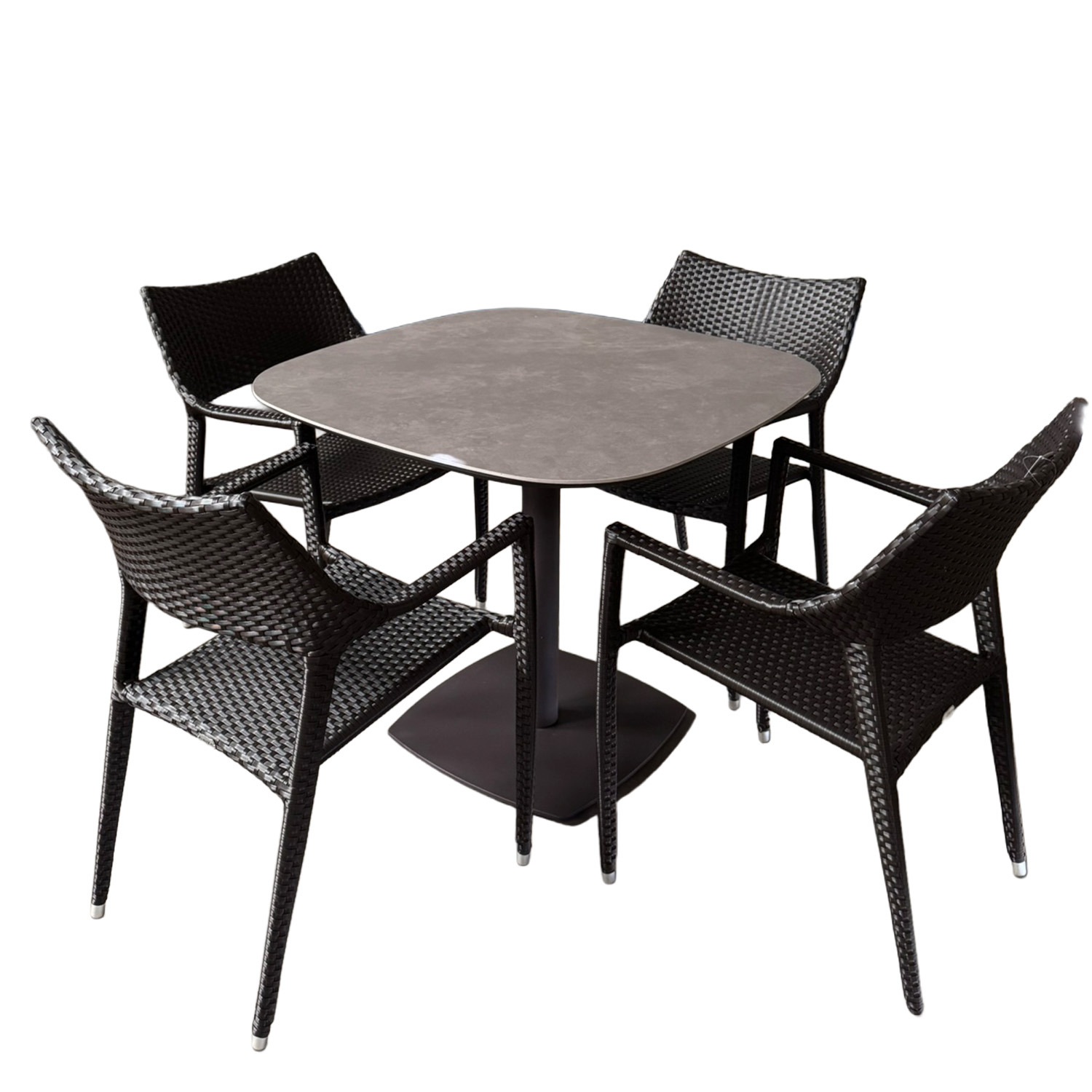 Mesa Cuadrada De Alum. Con Pedestal, Cubierta Sinterizada De Roca Chocolate