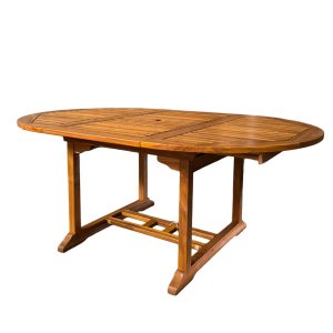 Mesa Oval de Teca con extensión de 1.20/1.80m x 1.20×0.74m